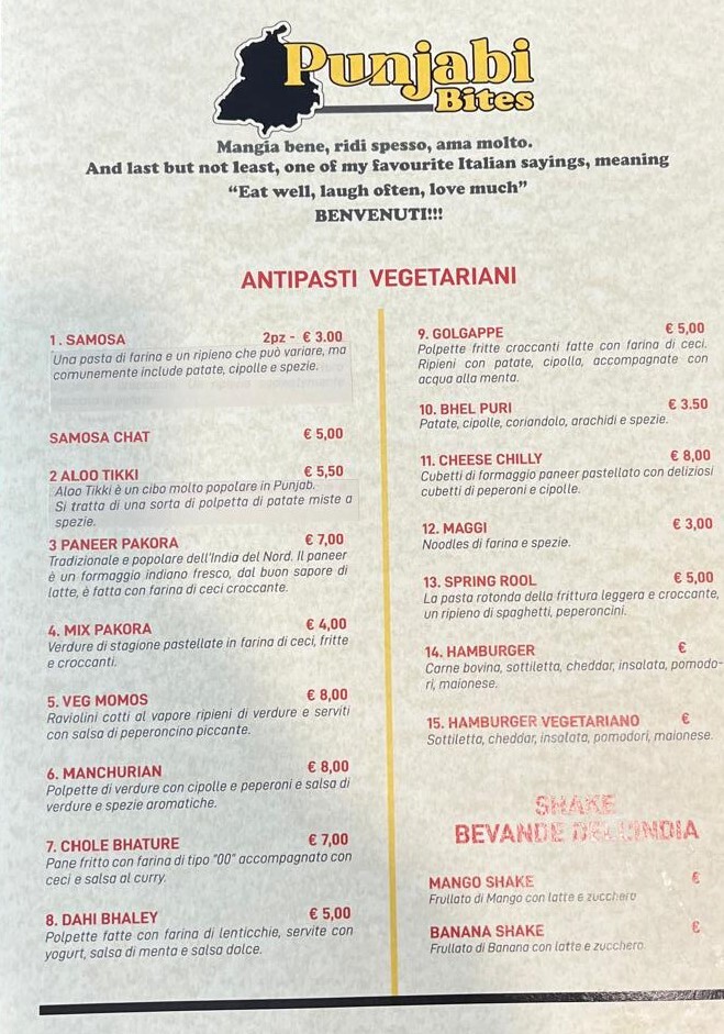 CALL +393920447800Welcome to PUNJABI BITES DI SINGH HARJOT, situated in the beautiful city of CASTEL SAN GIOVANNI. We're looking forward to hosting you as our guest! Be prepared to be captivated by our delicious selection of indian cuisine. Our flavoursome curry await you! Bring your friends and family and enjoy them. We're able to cater to a multitude of dietary preferences, offering a wide array of vegetarian options. Refreshing beer, wine, coffee, and tea are also available to complement your meal. Our helpful servers are waiting to delight you with tasty lunch and dinner.